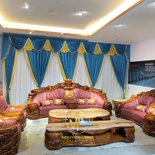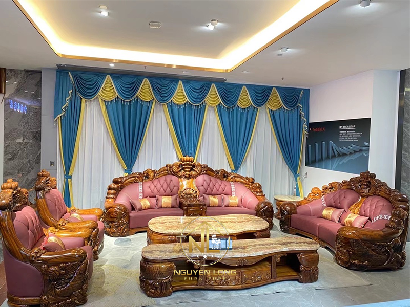 Đây không chỉ là bộ sofa tiếp khách thông thường mà còn là tác phẩm nghệ thuật nội thất, thể hiện gu thẩm mỹ đẳng cấp và phong cách sống tinh tế của gia chủ.